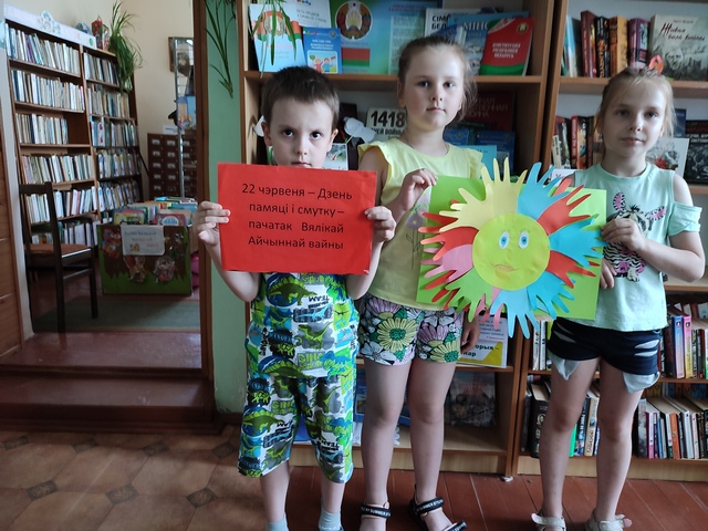 В Юньковской сельской библиотеке провели информационный час “Обязаны помнить”. В ходе мероприятия детям рассказали о начале войны, о том с какими трудностями сталкнулись защитники нашей Родины, какой тяжелой была Победа. Юные читатели узнали, что во время Великой Отечественной войны среди тех, кто защищал Родину, было очень много детей. Ребята прослушали военные песни и сделали поделку, которая символизирует мир “Пусть всегда будет солнце”.