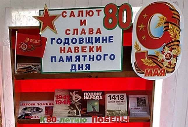 Приближается знаменательная дата – 80-летие со дня Победы в Великой Отечественной войне. Чтобы подчеркнуть значимость этого события в фойе Воропаевской горпоселковой библиотеки подготовлена книжная выставка — гордость «Салют и слава годовщине навеки памятного дня».