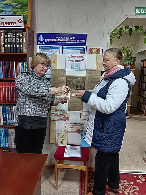 22 октября в Воропаевской горпоселковой библиотеке прошла акция «…А превратились в белых журавлей», которая стала важным напоминанием для её участников о значении поэтического слова в борьбе за мир. На память об этом дне всем посетителям библиотеки вручались напоминания об истории возникновения праздника со словами из песни «Журавли», флаеры «Журавль – символ вечной памяти и благодарности», «Светлая память всем павшим воинам», «Белые журавли напоминают нам о храбрости и самопожертвовании наших предков» и др.