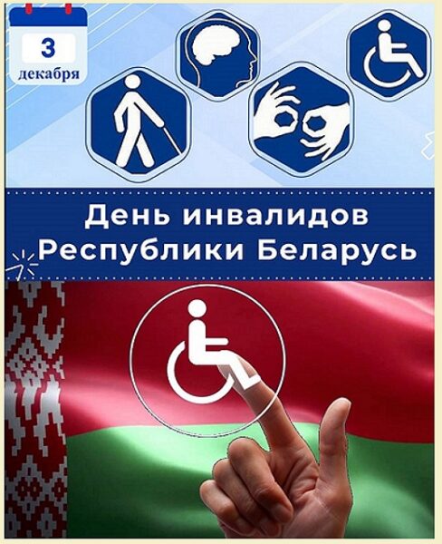 3 декабря в Беларуси отмечается День инвалидов Республики Беларусь. Эта дата связана с решением Генеральной Ассамблеи ООН, принятым в 1992 году, провозгласить 3 декабря Международным днём инвалидов.
