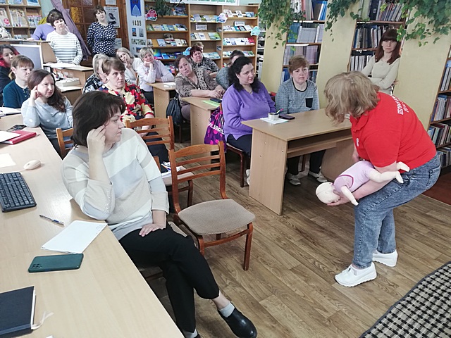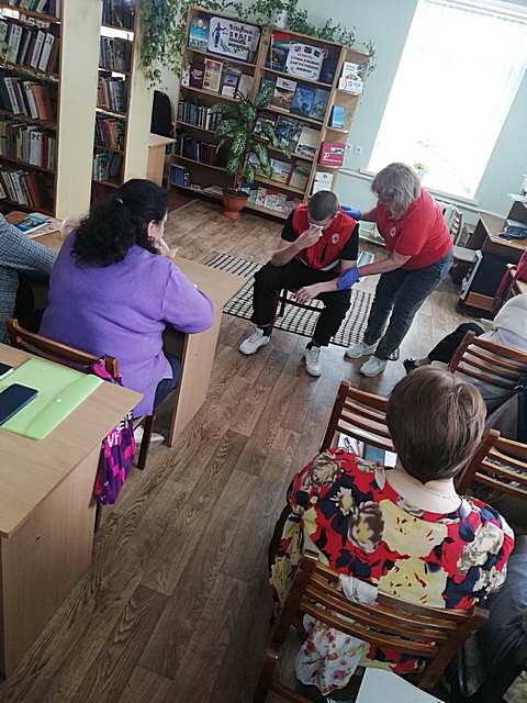 Именно с этой целью в Поставской центральной районной библиотеке был организован час полезных знаний «Первая помощь пострадавшим». На мероприятие были приглашены сотрудники Поставской районной организации Белорусского общества Красного Креста. Татьяна Николаевна Шахова, председатель районной организации Белорусского общества Красного Креста, вместе с волонтёром Даниилом рассказали и показали, как оказать первую помощь пострадавшим при несчастных случаях, травмах, отравлениях и других состояниях и заболеваниях, угрожающих жизни и здоровью.