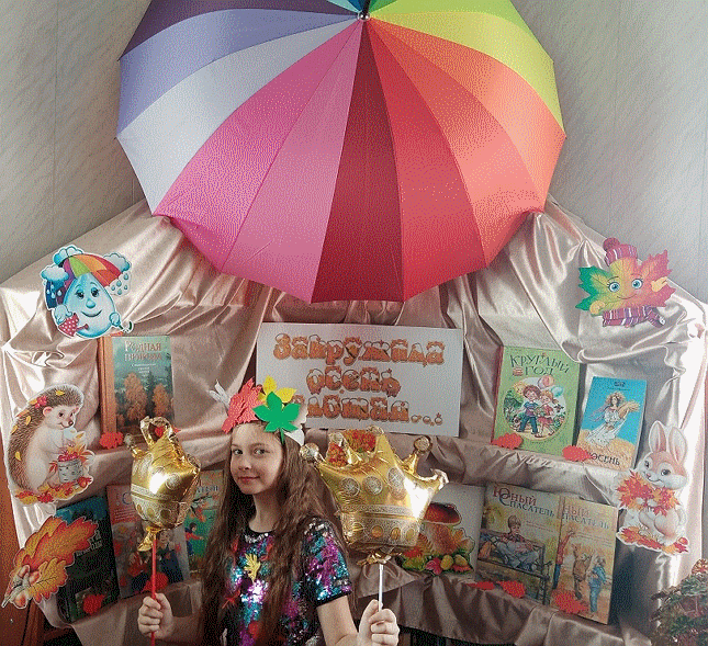 Праздник получился не только ярким и весёлым, но и «вкусным». Для детей был подготовлен сладкий стол, все участники получили памятные призы, а победитель – огромный воздушный шар. Окошко, украшенное осенними листьями, стало тематической фотозоной и привлекало внимание не только читателей библиотеки, но и жителей посёлка.