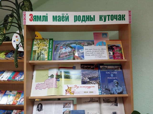 Да Году малой Радзімы ў гарадской бібліятэке аформлена кніжная выстава “Зямлі маёй родны куточак”, на якой прадстаўлена літаратура аб Пастаўскім крае, фотаальбомы, зборнікі артыкулаў і нарысы аб жыцці рэгіёна, аб гістарычных і памятных мясцінах краю.
