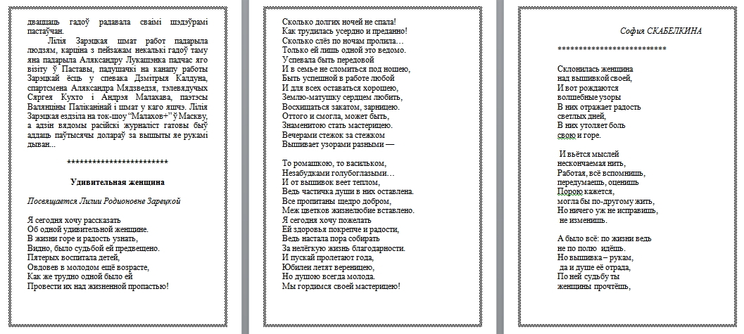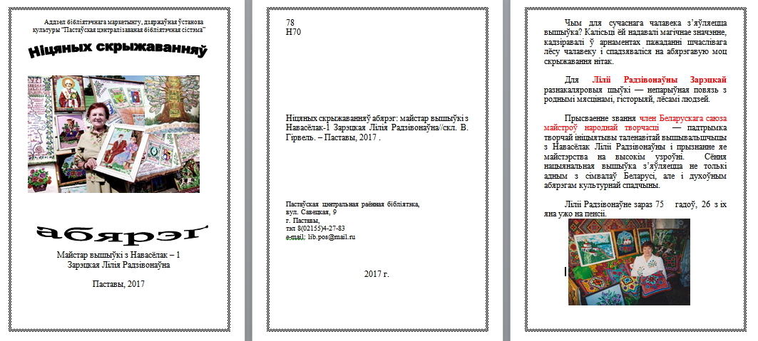 по матриалам ист: https://www.postawy.by/2022/06/zhitelnica-ag-novoselki-liliya-zareckaya-izvestnaya-v-rajone-vyshivalshhica/