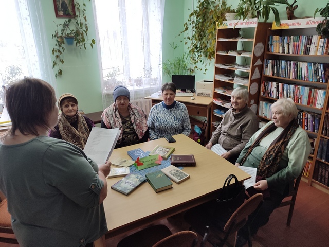 Бібліятэкар прапанавала ўдзельнікам мерапрыемства паспытаць свае сілы ў літаратурным конкурсе “Мова – душа народа”. Жанчыны вельмі актыўна адказвалі на пытанні, дзе трэба было па радках з вершаў назваць паэта і назву, па ўрыўку з твора адказаць, як называецца твор і хто яго напісаў, па вачах на фатаграфіі назваць імя пісьменніка.