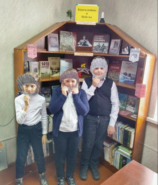В библиотеке для читателей, жителей и гостей посёлка было оформлено Окно Победы «Я помню! Я горжусь!», а в читальном зале начал работу книжный эшелон «Книги войны и Победы». 5 мая библиотекари приняли участия в праздничном митинге и возложили цветы к памятнику погибшим воинам в городском парке. После торжественного мероприятия учащиеся 3–4 классов были приглашены на литературный марш-бросок «Аты-баты шли солдаты». Дети, разделившись на команды «Пограничников» и «Десантников» с интересом складывали пословицы о войне, читали военные стихи, расшифровывали шифровки, искали спрятанные фразы про армию, готовили перевязочный материал для раненых, собирали военные пазлы, участвовали в тематической фотосессии.
