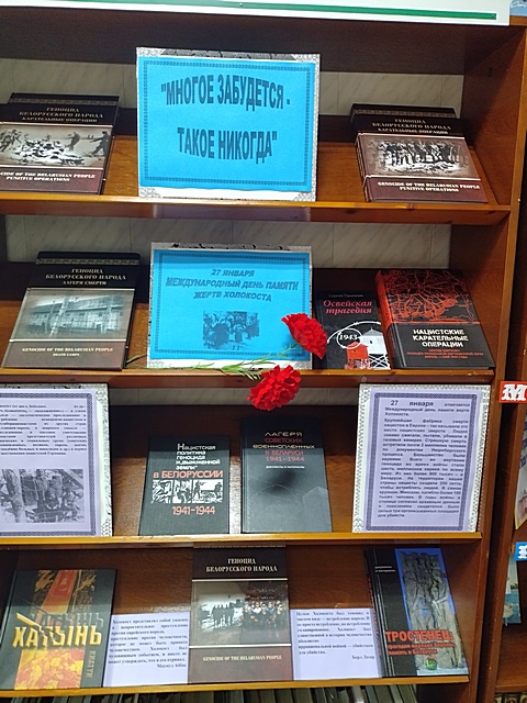 В Воропаевской горпоселковой библиотеке вниманию пользователей представлена книжная выставка-память «Многое забудется – такое никогда», на которой представлены материалы об испытаниях, через которые пришлось пройти белорусскому народу в годы Великой Отечественной войны.