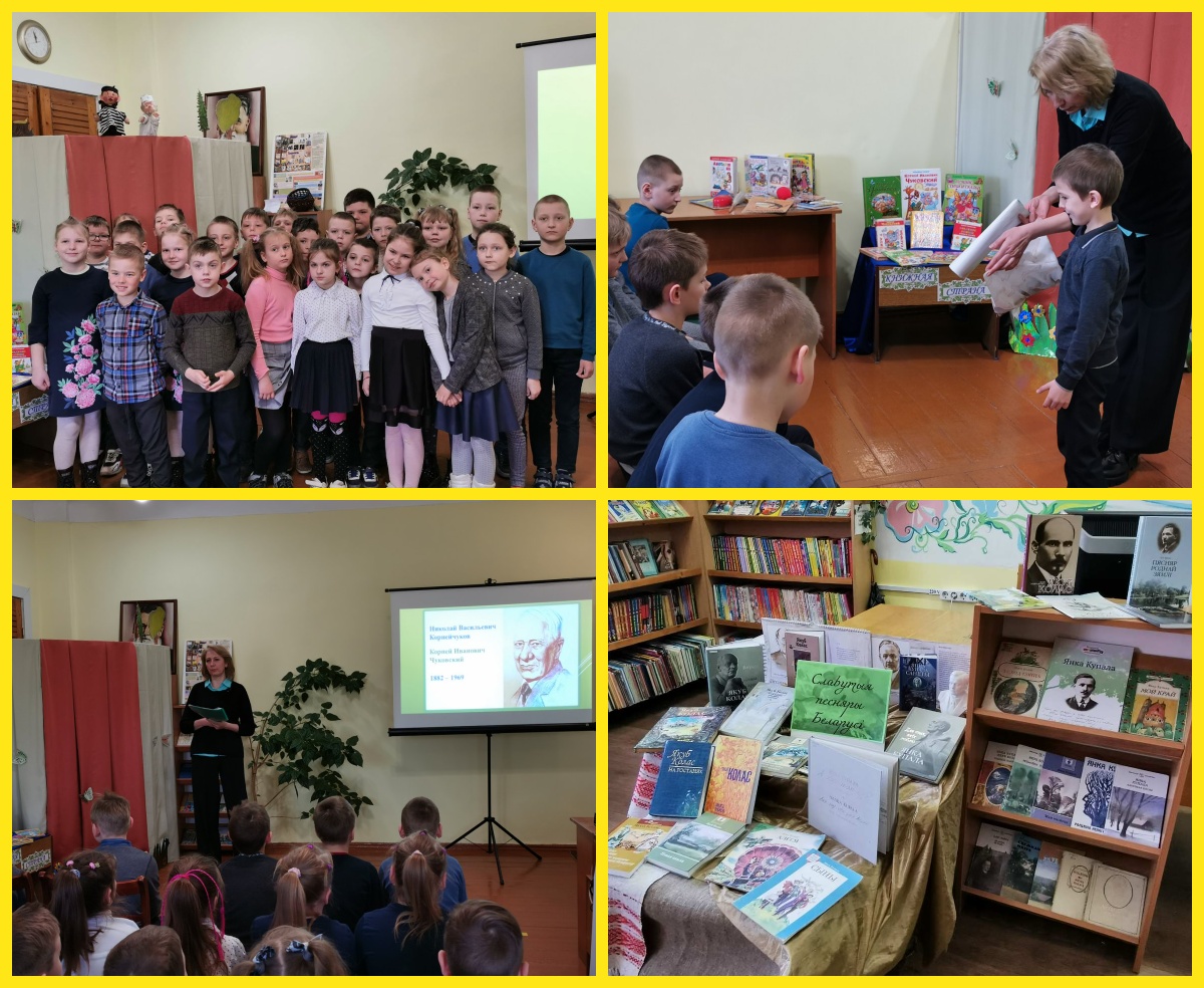 Открытие Недели детской юношеской книги — утренник “Весёлые книжные приключения” прошёл в СШ №1 для учеников третьих классов. В самой детской библиотеке прошли такие мероприятия: творческая лаборатория “Таямніцы беларускага ўзору”, литературно-познавательное представление “Беларусь моя родная”, сказочное представление “Невероятные приключения с Айболитом”, открытый просмотр книг “Славутыя песняры Беларусі”.