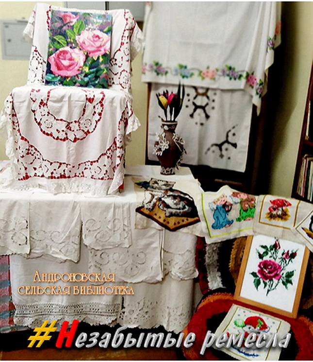 Так называлась выставка, которая действовала с 5 по 17 октября в Андроновской сельской библиотеке. Вышитые в традиционной технике ручники, связанные крючком салфетки, привлекали внимание взрослых, пробуждали интерес у детского читателя.