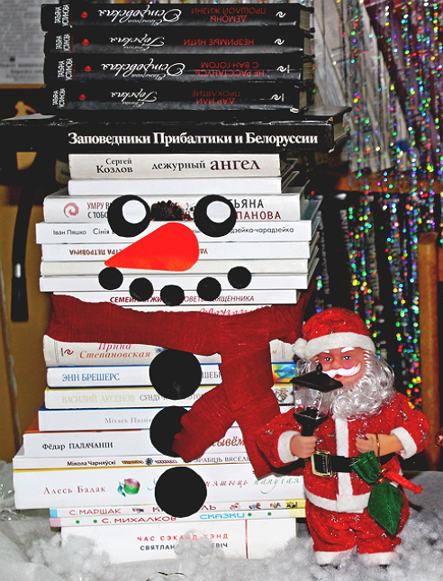 В преддверии новогодних праздников в Дуниловичской сельской библиотеке появились Снеговик и Олень, которых “слепила” библиотекарь из книг.