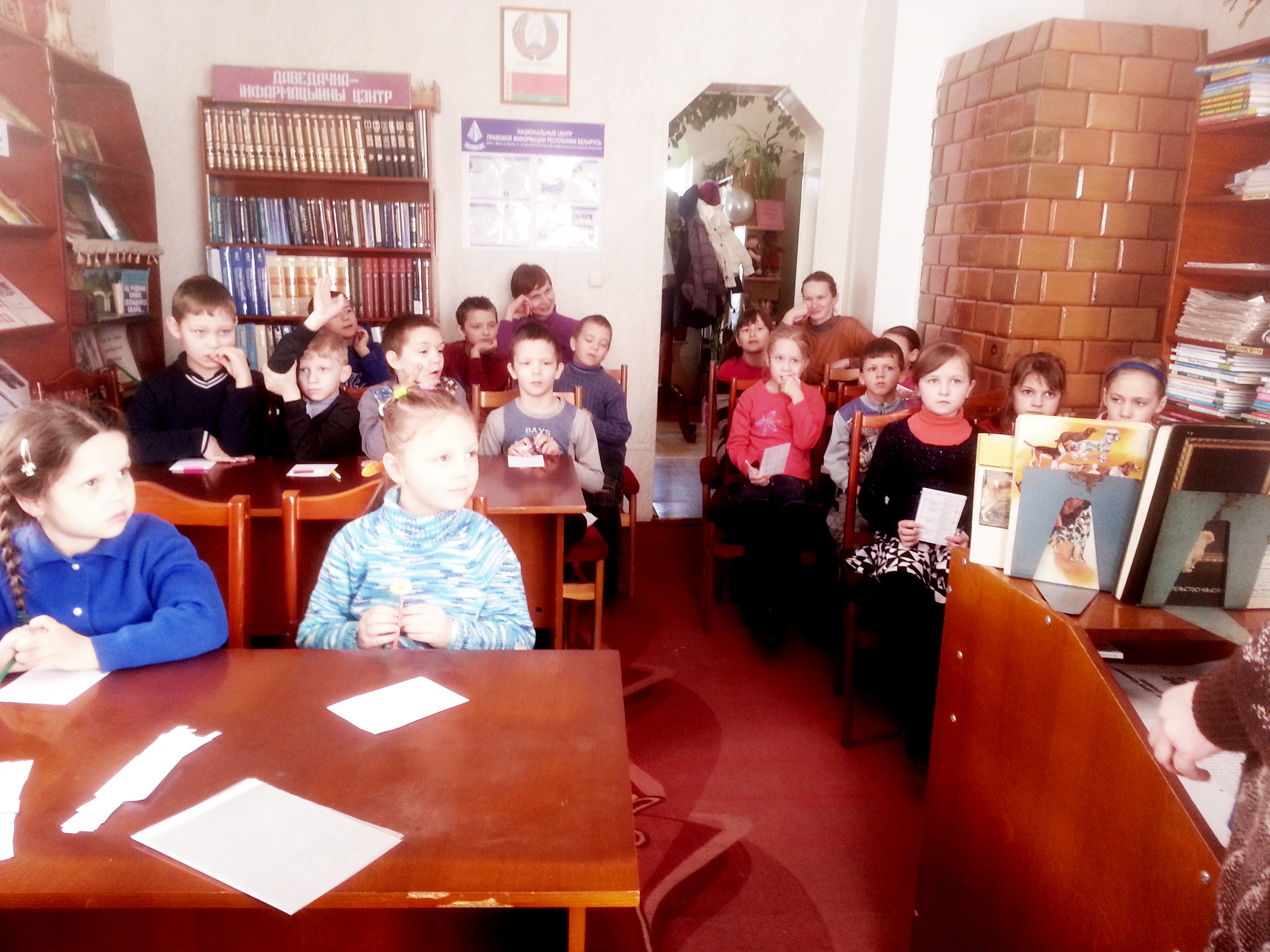 Спачатку бібліятэкар Пашкова А.А. расказала аб тым,што сабака з’яўляецца верным сябрам чалавека з даўнейшых часоў , таму што яна першай прыняла яго заступніцтва. Дзяцей пазнаемілі з кніжнай выставай “Собака- друг человека”, з рэдкімі пародамі сабак, успомнілі вершы і песні пра сабак.