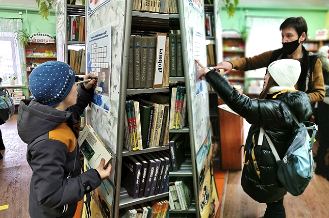 Спачатку ўдзельнікі пазнаёміліся з жыццёвым і творчым шляхам паэта. А потым дзеці звярнулі сваю ўвагу на падборку кніг, з дапамогай якіх можна было знайсці адказы на пытанні крыжаванкі.