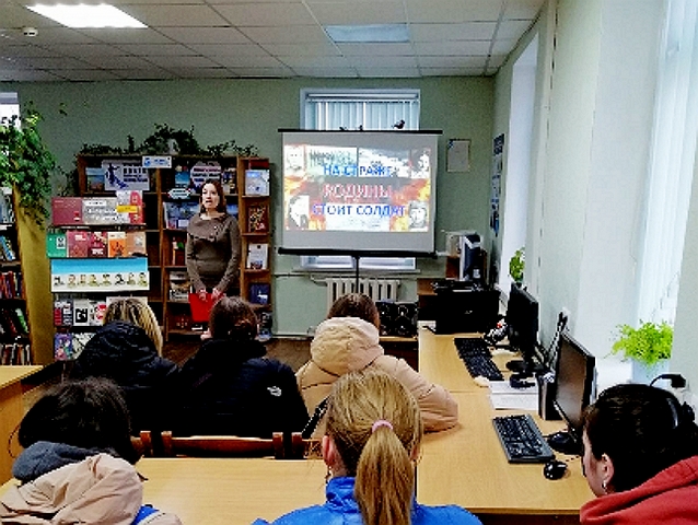 На патриотический урок «Стоит на страже Родины солдат», приуроченный ко Дню защитника Отечества, Поставская центральная районная библиотека пригласила одну из групп учащихся Поставского государственного колледжа.