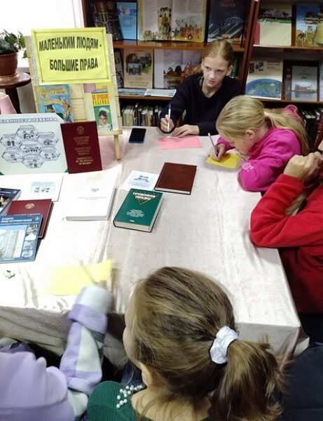 19 ноября в Воропаевской горпоселковой библиотеке к этой дате был приурочен правовой квиз «Чтоб свои права качать, нужно их, ребята, знать!». На мероприятие были приглашены дети из кружка «Академия досуга», который работает при местном доме культуры. Дети не только отвечали на тематические вопросы, но и называли свои права, анализировали поступки других, учились отстаивать свои взгляды в вопросах общественной жизни, а также играли в буриме на правовую тему. Помощь в нахождении правильных ответов оказывала книжная выставка «Маленьким людям – большие права».