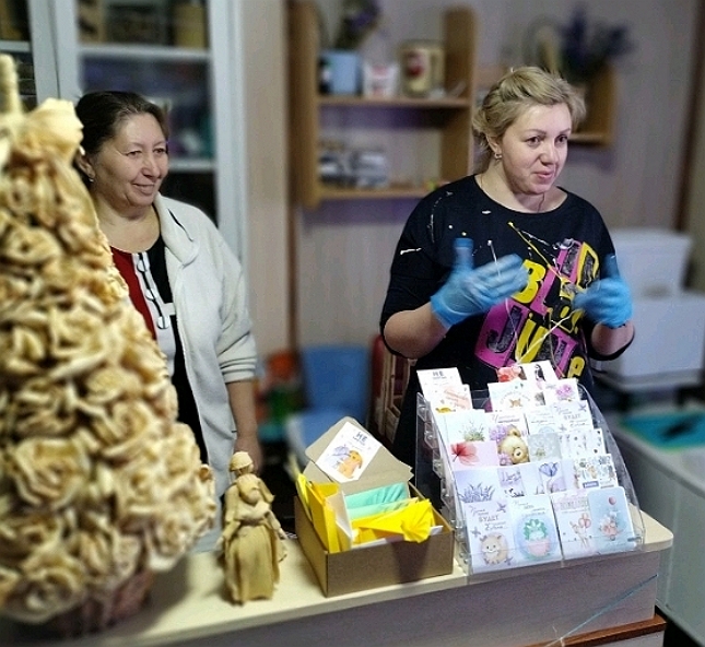 С 2019 года оформилась ремесленником, вместе с мамой работает в мастерской подарков «Ласточкино гнездо».