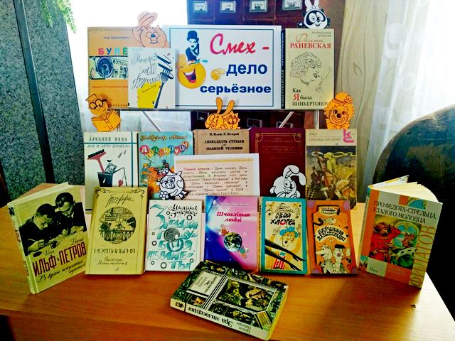 Накануне 1 апреля на абонементе начала действовать выставка-провокация «Смех – дело серьезное». Это интерактивная выставка, включающая такой элемент игры, как сознательные ошибки в подборе литературы. Читателям предлагается найти несоответствия теме в деталях выставки и сообщить о них организаторам.