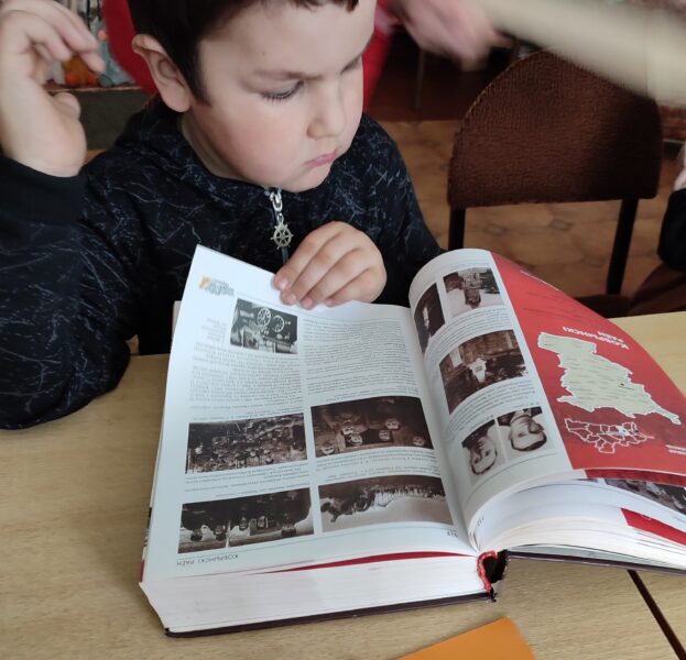 Библиотекарь рассказала детям о войне, показала видеоролик “Детям о Великой Отечественной войне”. Вместе рассмотрели иллюстрации из книг о тех событиях и прочитали рассказ К. Паустовского “Похождения жука-носорога”.