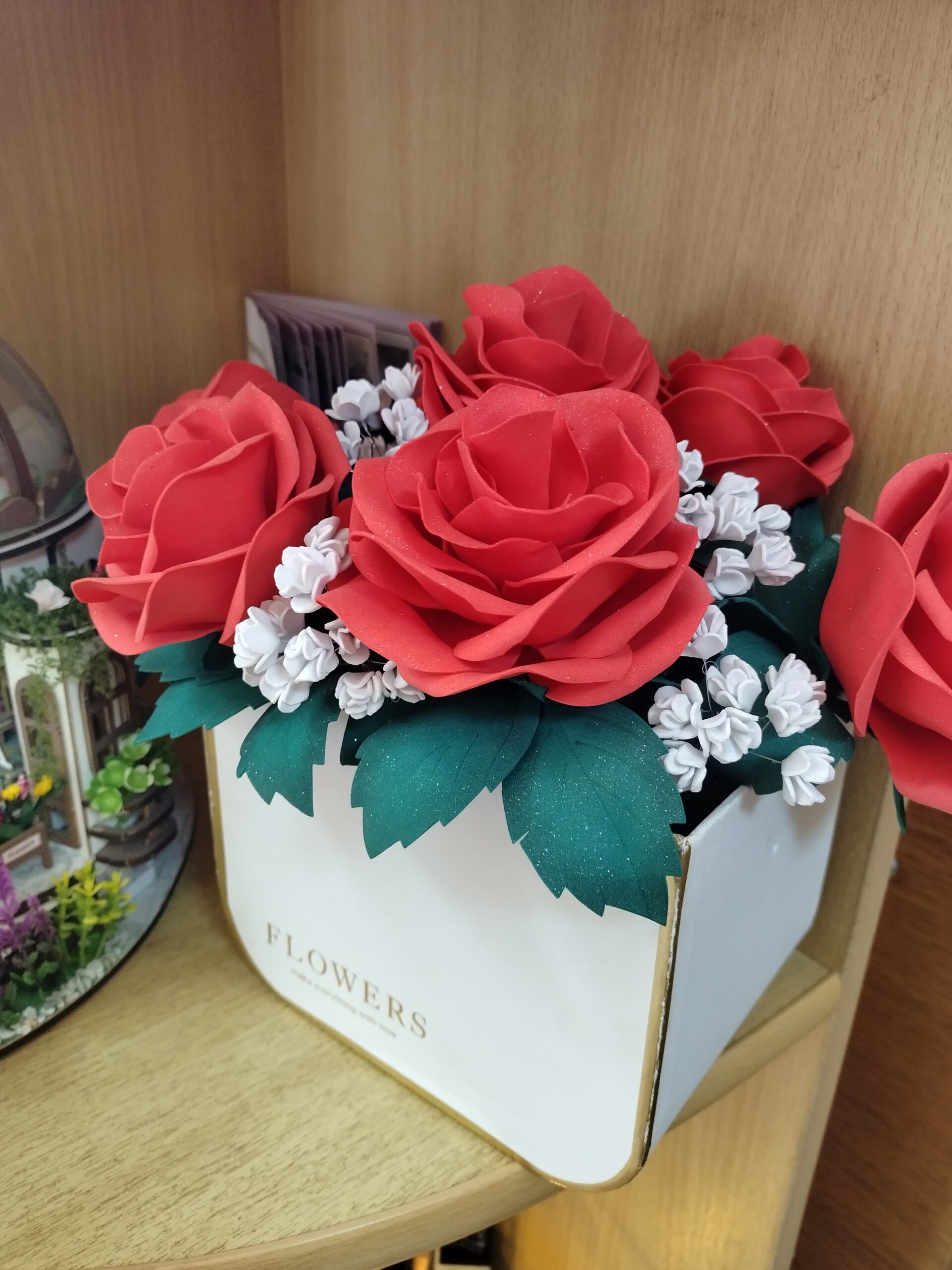 Ирины Валентиновны Козел. Талантливая и успешная, трудолюбивая и увлеченная, она ни одной минутки не сидит без дела. В последнее время Ирина Валентиновна увлеклась созданием румбоксов, коллекцию которых и представила на необычной выставке «Волшебство в миниатюре» в Воропаевской горпоселковой библиотеке. Румбоксы давно превратились в отдельную разновидность хобби талантливой женщины, ведь кропотливый процесс создания крошечных домиков может надолго увлечь кого угодно. Не только дети, но и взрослые увлеченно принимаются обустраивать жилище, делать мини-ремонт и мастерить прочие милые вещицы, которые придадут комнатке уютный и обжитой вид. Такое увлечение помогает раскрыть творческий потенциал и позволяет попробовать себя в роли архитектора, строителя или дизайнера. На выставке представлены миниатюры воздушной оранжереи, волшебного и цветочного домиков, магического замка Хогвартс Гарри Поттера. Выставка также дополнена яркими букетами цветов из фоамирана, сделанные руками Ирины Валентиновны.