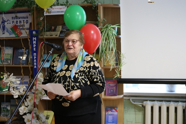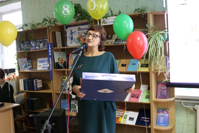 В нарядно украшенном зале звучали приветственные слова бывших директоров Макруш Евгении Семёновны и Костень Людмилы Гавриловны, нынешнего директора Литвинович Анны Викторовны, представителей профсоюзной организации Далецкой Инны Алексеевны и Друсь Валентины Юрьевны, старейшей читательницы Нестерович Светланы Дмитриевны, постоянной участницы клуба по интересам «Современники» Стрилец Лидии Кузьминичны, звучали песни в исполнении солистов вокальной эстрадной студии «Славия» Центра культуры и народного творчества района под руководством Николаевой Оксаны Анатольевны.