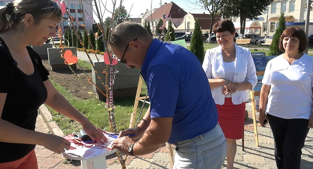 У мінулую сераду ўвагу пастаўчан і гасцей горада, якія праходзілі праз сквер на плошчы Леніна, прыцягвалі ўпрыгожанае рознакаляровымі стужкамі і папяровымі сэрцайкамі дрэўца і размешчаная побач з ім выстава кніг пра Пастаўшчыну, у тым ліку напісаных мясцовымі аўтарамі. Гэта работнікі цэнтральнай раённай бібліятэкі праводзілі акцыю пад назвай «Пажаданне любімаму гораду», прысвечаную яго 610-гадоваму юбілею. Усім, хто з цікавасцю пазіраў у іх бок, бібліятэкары прапаноўвалі напісаць на сэрцайку, што яны зычаць Паставам, і павесіць сваё пажаданне на галінку дрэўца. Тыя, хто згаджаўся паўдзельнічаць у акцыі — а такіх было нямала, — атрымлівалі ў падарунак закладкі для кніг з гістарычнымі звесткамі пра наш горад, інфармацыяй пра цэнтральную райбібліятэку і яе сайт, а таксама з QR-кодам. Накіраваўшы на яго камеру мабільнага тэлефона, можна аўтаматычна трапіць на сайт установы.
