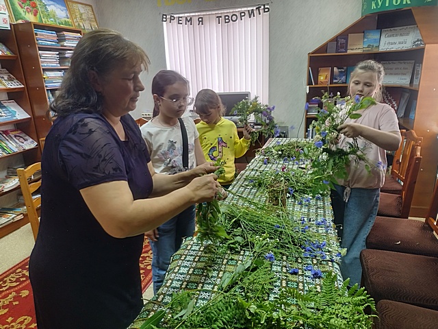 6 июля в Воропаевской горпоселковой библиотеке для учащихся 2–6 классов с целью приобщения к истокам народной культуры и пробуждению интереса к народному творчеству были организованы громкие чтения. Библиотекарь представила присутствующим сборник “У ноч на Івана Купалу” и рассказала, что эта книга содержит рассказы и легенды, связанные с праздником Купалье, которые отражают народные верования и традиции, бытующие на территории Беларуси. Участниками мероприятия было прочитано несколько легенд о купальской ночи. Дети узнали, что в эту ночь, по поверьям, распускается волшебный цветок, который дарует нашедшему его способность понимать язык зверей, видеть клады и становиться невидимым. Также узнали, что в эту ночь целебные травы наделяются волшебной силой, а традиция празднования всеми любимого праздника требовала непременного участия всех жителей селения от мала до велика. Только все вместе они могли защитить свои жилища и каждого их обитателя от злых сил, пытавшихся одолеть людей в купальскую ночь. С огромным интересом дети загадывали желание, прикрепляя ленточку на веточку березки и которое обязательно сбудется в течение года, отгадывали загадки о растениях к празднику Ивана Купалы, учились плести купальские венки и искали цветок папоротника. Ведь не только наши предки, но и каждый из нас сегодня верит, что в ночь на Ивана Купалу происходят чудеса. Вниманию участников мероприятия была представлена книжная выставка “Чудеса в летнюю ночь”.
